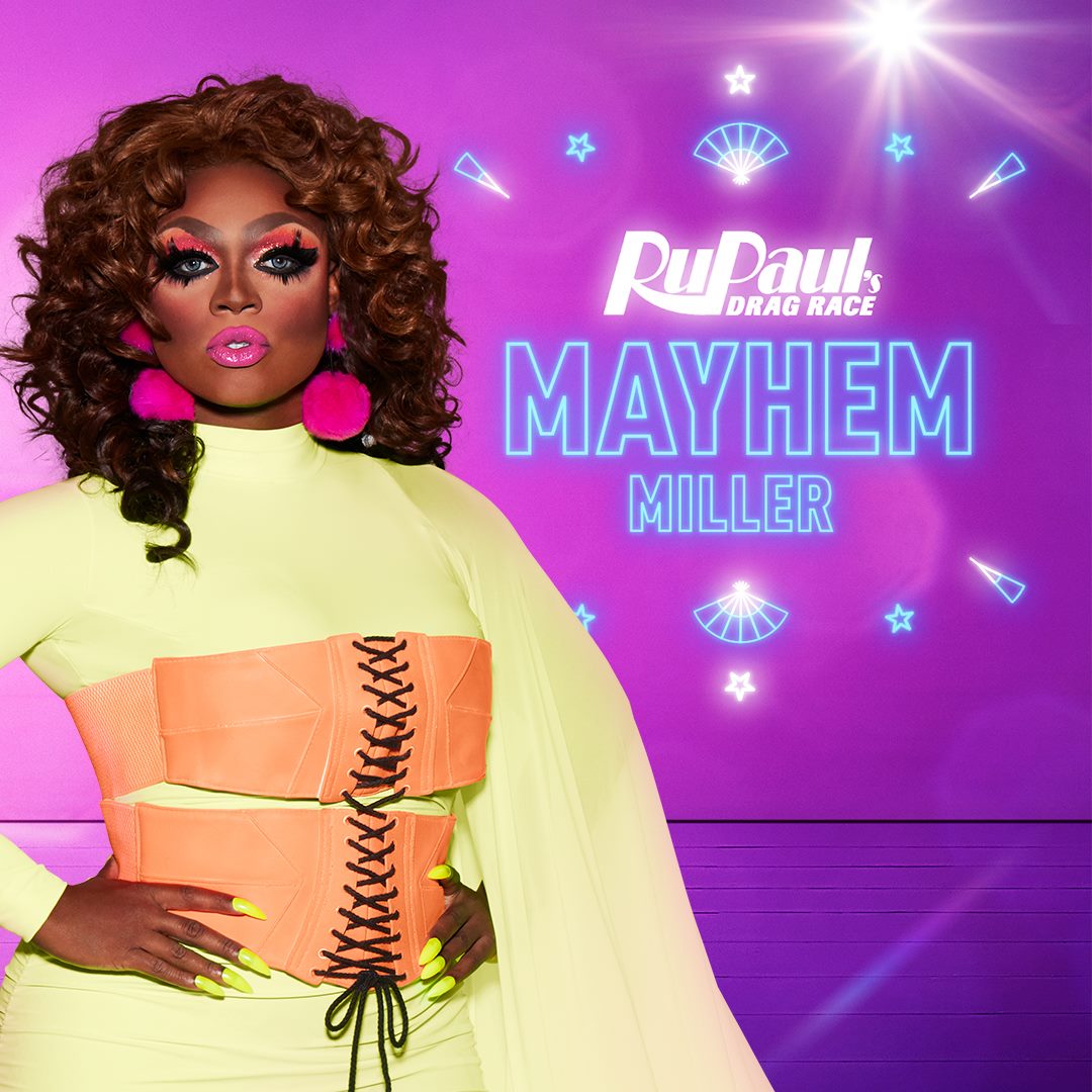 Mayhem pode ser considerada uma representante da realeza na competição. Ela é amiga de algumas drags que já passaram pelo programa e deixaram sua marca, como Raven, Morgan McMichaels, Delta e Detox. Mayhem é cotada na competição desde a primeira temporada e só agora na Season 10 que veio mostrar seu talento. Será que a espera vai valer a pena?